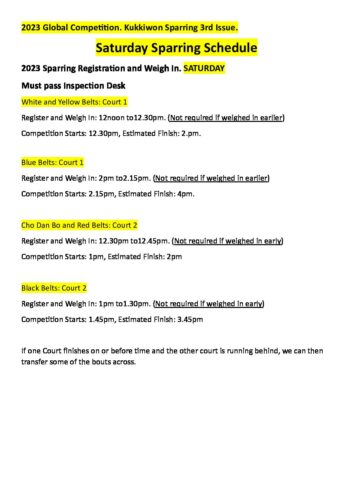 2023 Saturday Sunday Sparring schedule