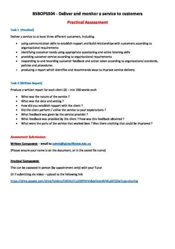 BSBOPS304 – Deliver and monitor a service to customers_ Prac Assessment