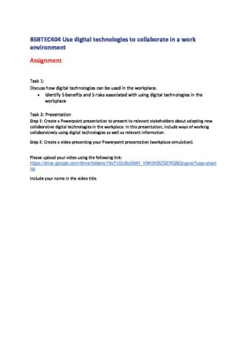 BSBTEC404 Use digital technologies to collaborate in a work environment August 22, 2022 MONIQUE MULETA