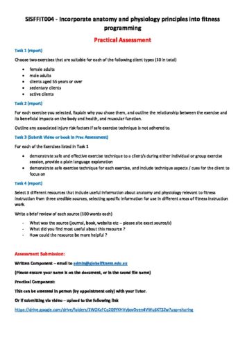 SISFFIT004 Incorporate anatomy and physiology principles into fitness training