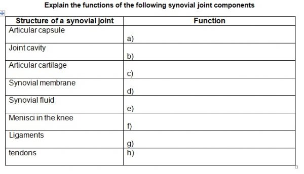 synovial joint table