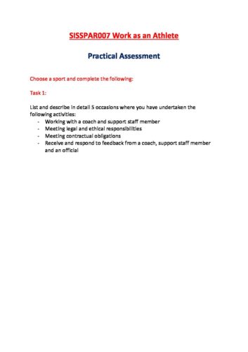 SISSPAR007 SISSPAR007 Work as an Athlete