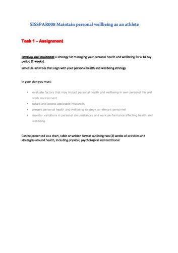 SISSPAR008 Maintain personal wellbeing as an athlete