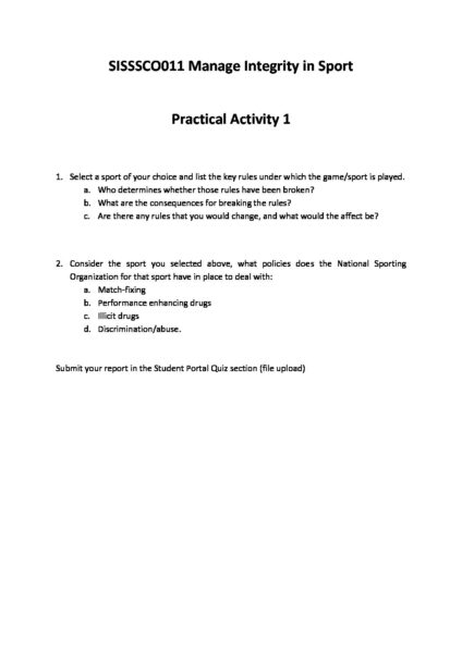 SISSSCO011 Manage Integrity in Sport _ Practical Assessment 1