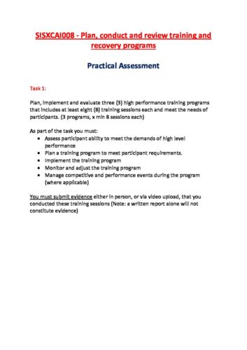 SISXCAI008 – Plan, conduct and review training and recovery programs_prac assessment