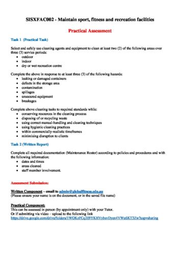 SISXFAC002 – Maintain sport^J fitness and recreation facilities_Prac Assessment September 6, 2022 Michael Muleta