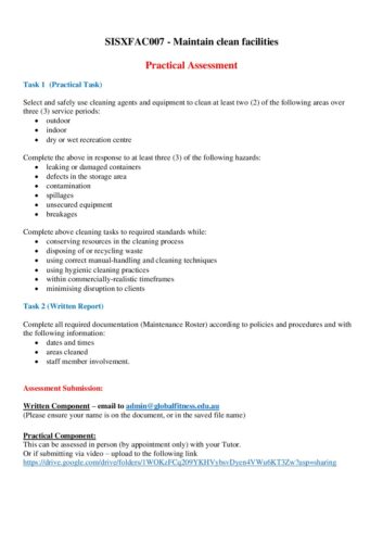 SISXFAC007 – Maintain clean facilities_Prac Assessment